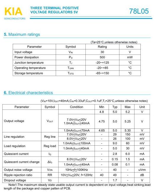 78L05產(chǎn)品主要參數(shù)-KIA78L05