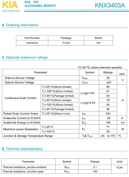 無人機MOS管 3403A 85A?/30V?型號參數(shù)規(guī)格書-原廠直銷 免費送樣-KIA MOS管