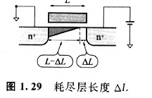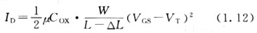 如圖1.29所示,設(shè)溝道端與漏區(qū)端之間耗盡層的長(zhǎng)度為△L,那么漏極電流可表示為