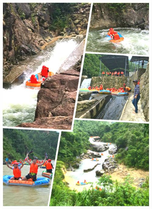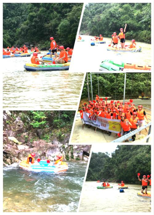 這次出游雖碰上了的各種陣雨,但雨中漂流也別有一番風(fēng)味,更增添了樂(lè)趣。小伙伴們兩兩組合,男女搭配,互幫互助,各組漂流中嬉戲潑水,暴雨中已分不清潑過(guò)來(lái)是溪水還是雨水。真的勇士,敢于直面潑過(guò)來(lái)的溪水,敢于正視淋漓的陣雨!