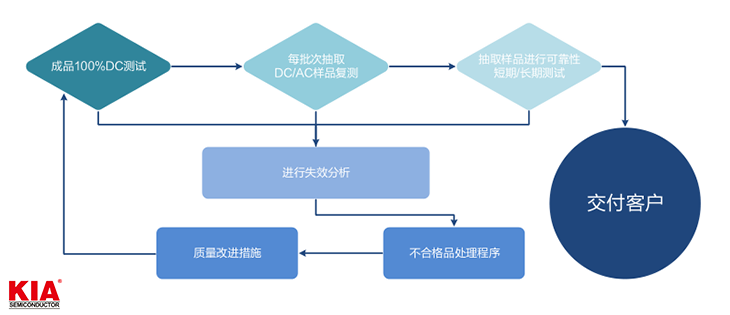 KIA半導(dǎo)體執(zhí)行全面質(zhì)量管理體系,是將所有產(chǎn)品從芯片設(shè)計開始,一直貫穿到客戶使用的全過程質(zhì)量跟蹤和監(jiān)控。