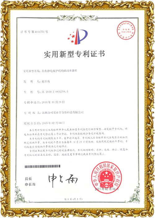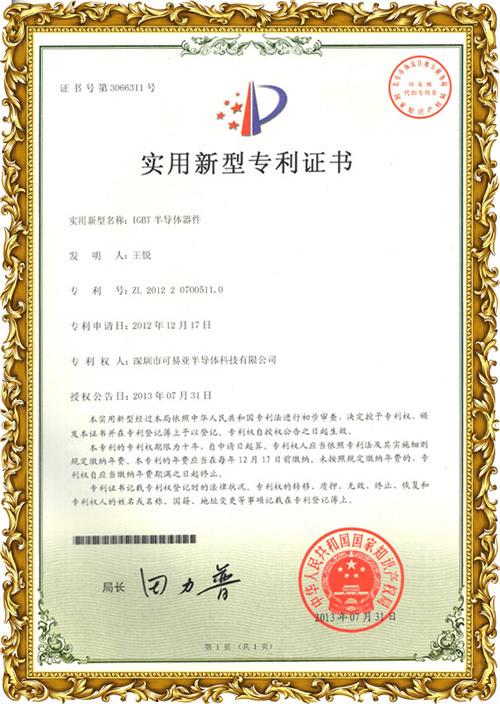 實(shí)用新型專利證書