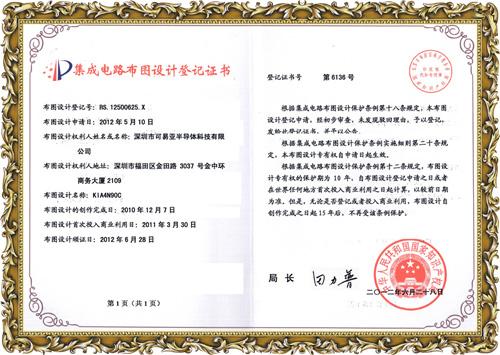 集成電路布圖設(shè)計(jì)證書