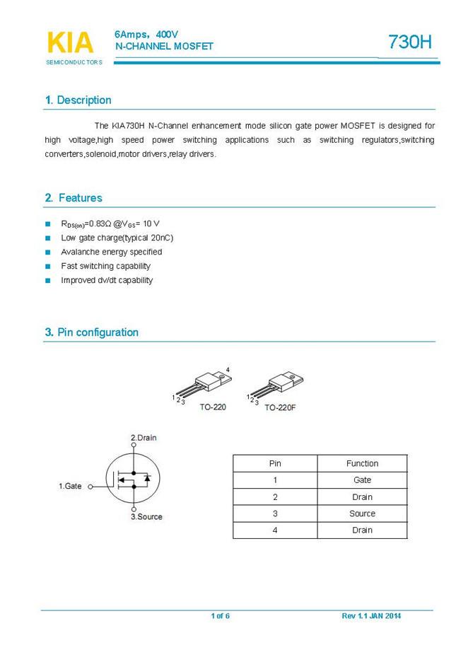 參數(shù): ID(A): 6 BVDSS(V): 400 RDS(ON): 1 Qg(nC): 18 Package: TO-220、TO-220F TO-251 TO-252