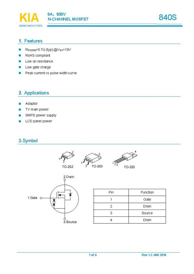 參數(shù): ID(A): 8 BVDSS(V): 500 RDS(ON): 0.9 Qg(nC): 24 Package: TO-252、TO-263、TO-220 TO-220F