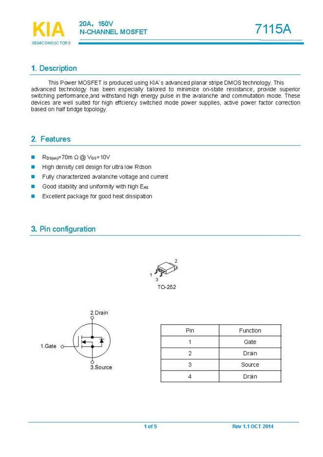 參數(shù): ID(A): 20    BVDSS(V): 150    RDS(ON): 0.085    Qg(nC): 18    Package: TO-252 TO-251