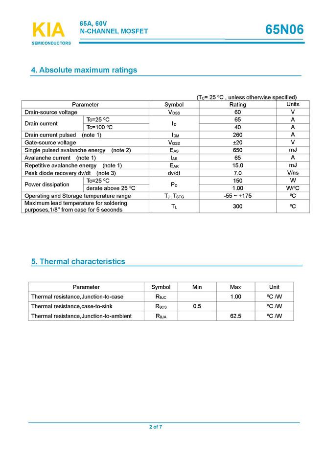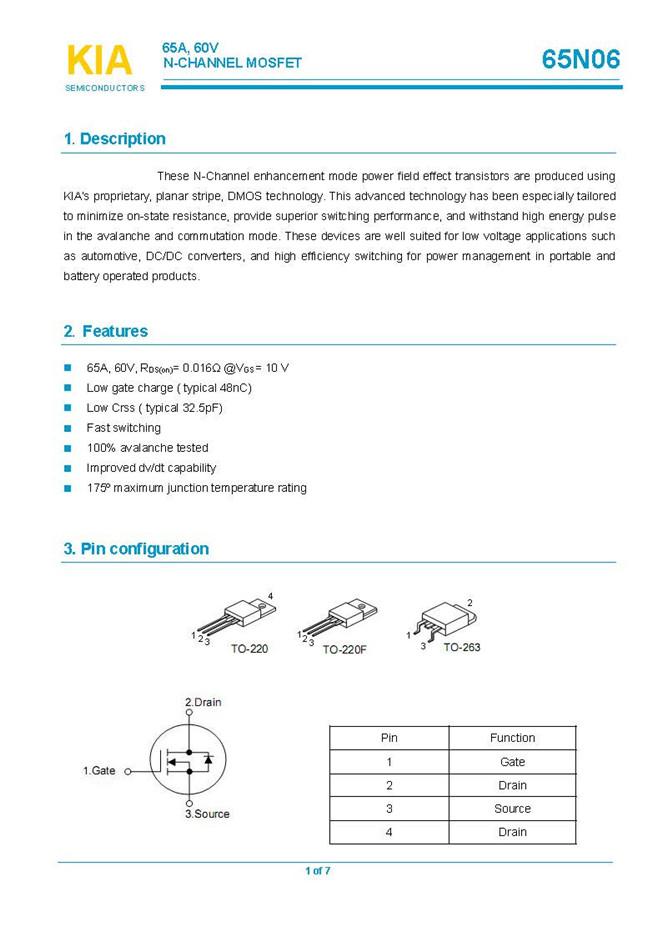 參數: ID(A): 65    BVDSS(V): 60    RDS(ON): 0.016    Qg(nC): 40    Package: TO-220、TO-220F、TO-263