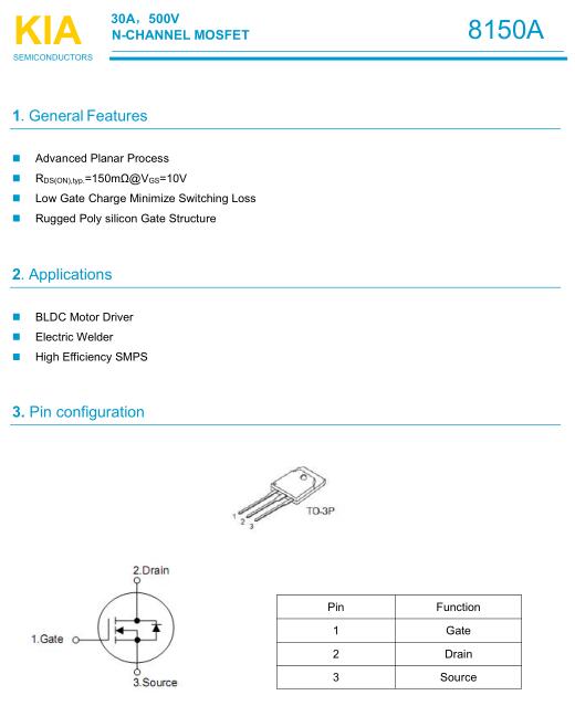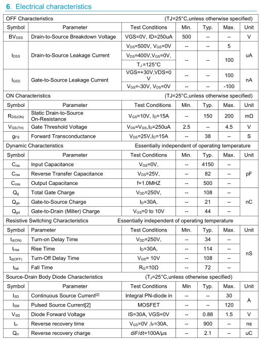 參數(shù): ID(A): 30 BVDSS(V): 500 RDS(ON): 0.2 Qg(nC): 108 Package: TO-3P