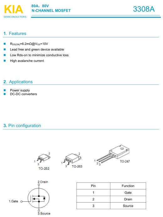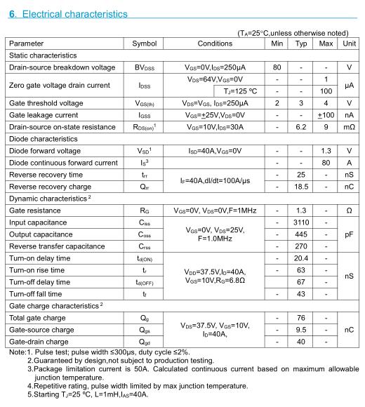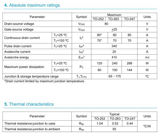參數(shù): ID(A): 80 BVDSS(V): 80 RDS(ON): 6.2 Qg(nC): 76 Package: TO-263、252、220