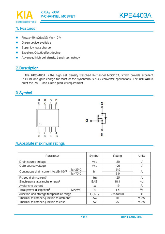 參數(shù): ID(A): -5 BVDSS(V): -30 RDS(ON): 40mΩ Qg(nC): 6.5 Package: SOP-8